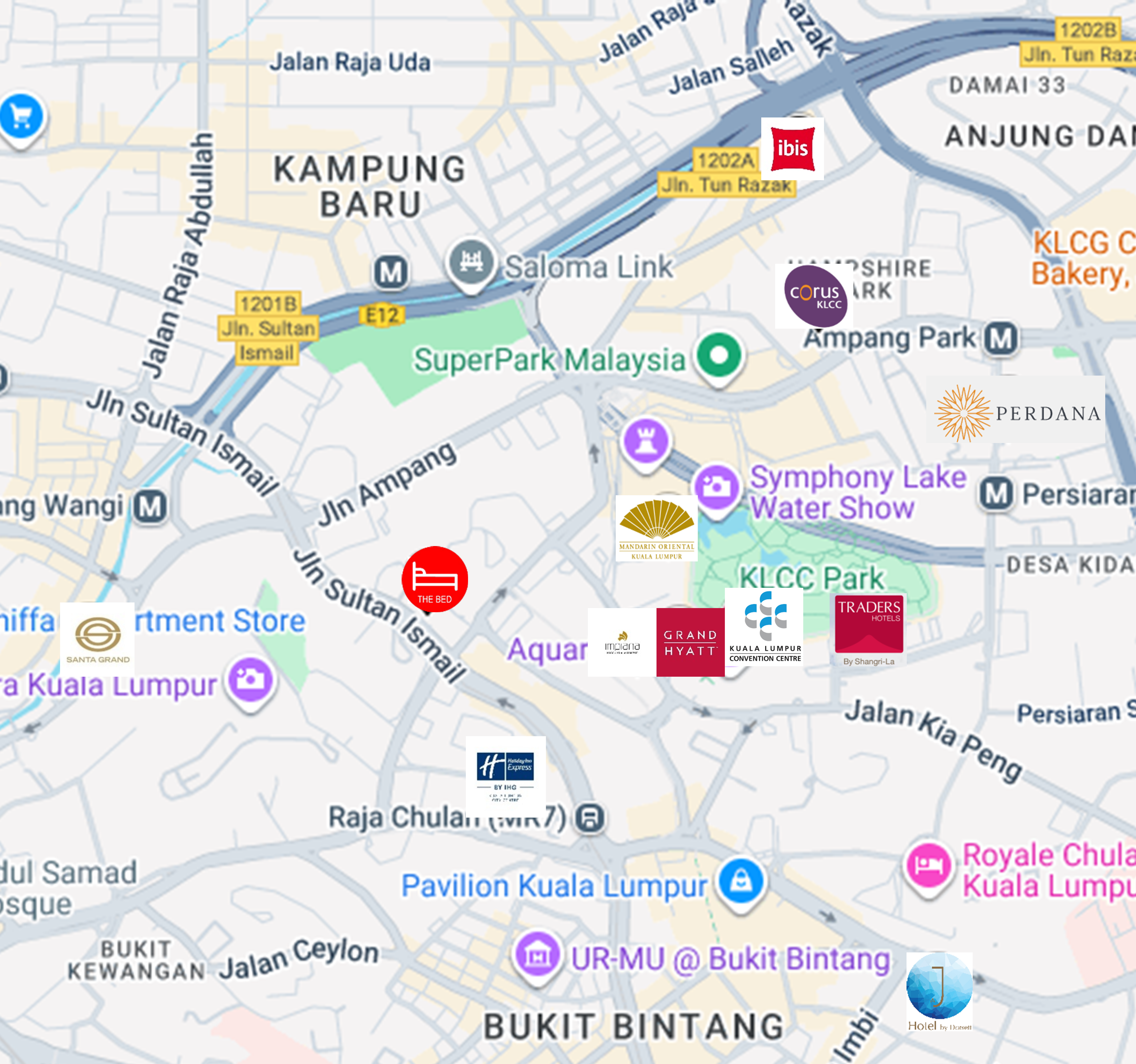 | 4★ | Santa Grand Signature Kuala Lumpur | 220+ ~ 350+ | 15~20 mins / 3.7~5.3 km | 35~40 mins / 2.3~2.8km |
