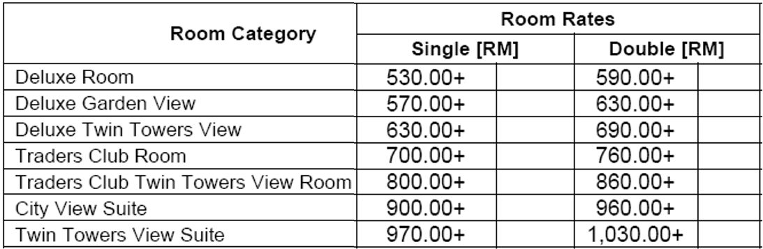 ▪ Room rates quoted are inclusive of Traders Club Floor benefits for Traders Club and Suite category only.